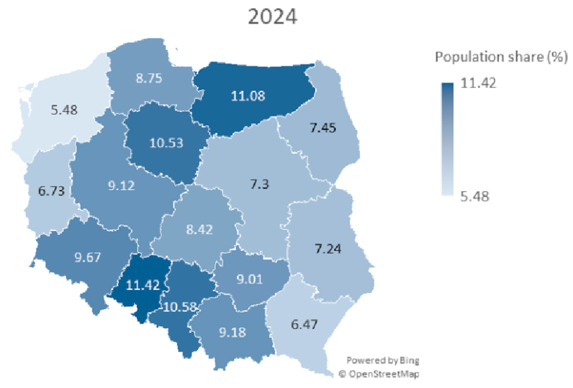 | Wielkopolskie | 2023 | 10,634 | 120,488 | 8.83 | 46.85 | 53.15 |