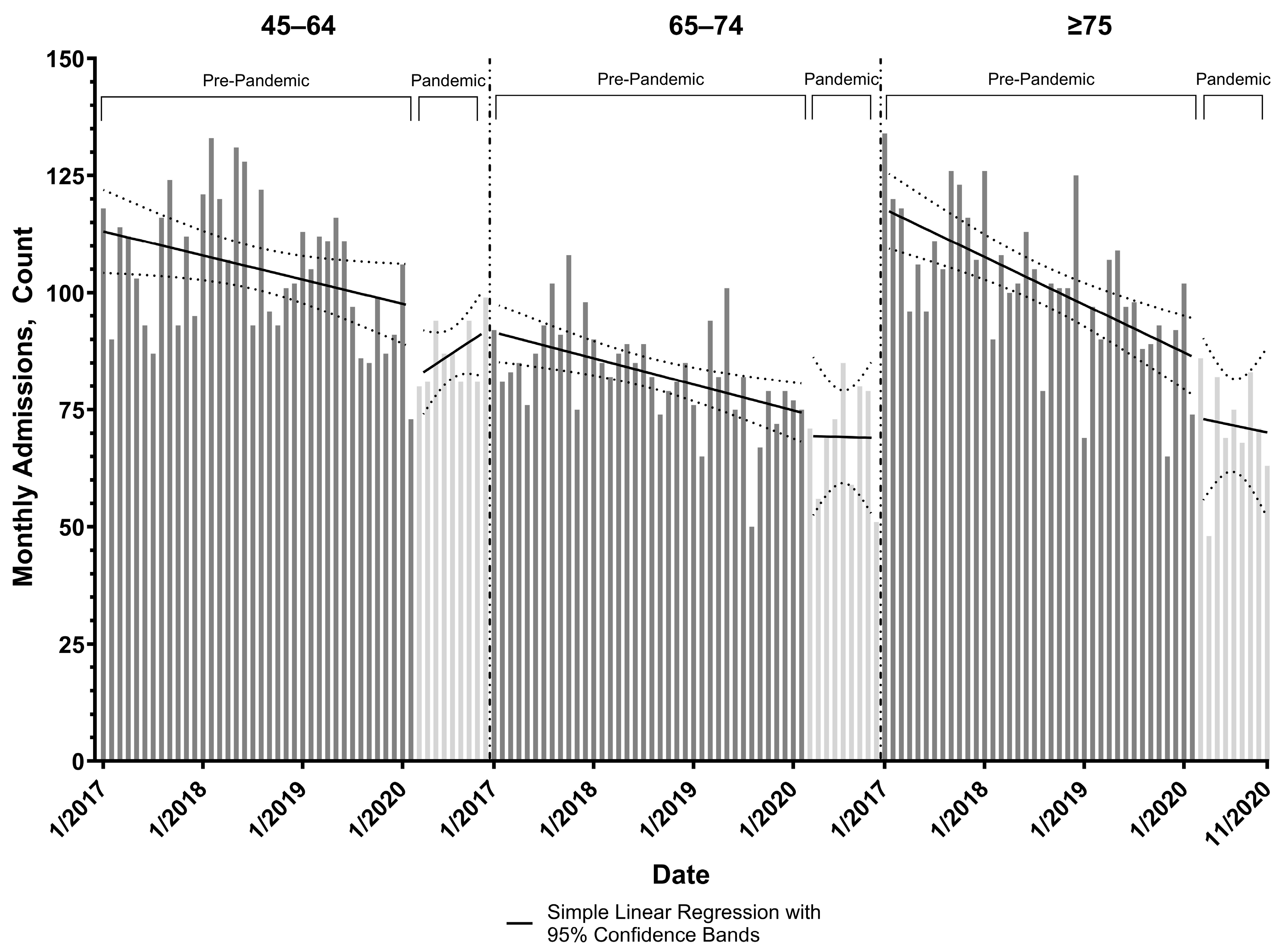 | ≥75 | Pre-Pandemic 1 Slope | −0.85 | −1.23, −0.47 |