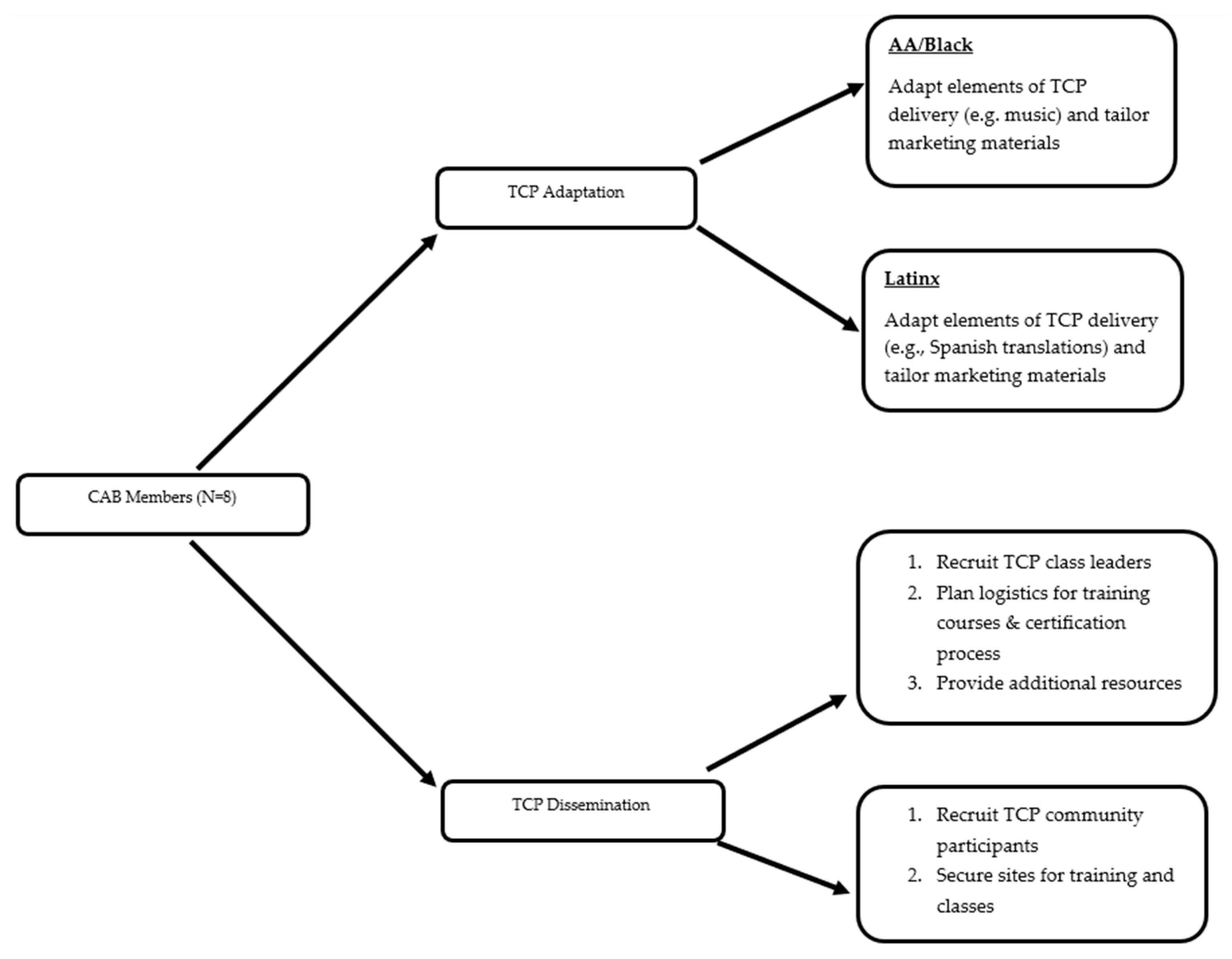 | Cab Outcomes | Implementation | Adaptation of TCP delivery | General tailoring of marketing materials to meet communities’ needs |