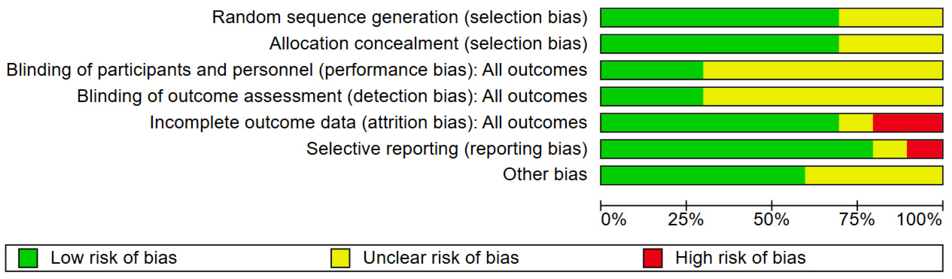 - Nikolakopoulou, A.; Higgins, J.P.T.; Papakonstantinou, T.; Chaimani, A.; Del Giovane, C.; Egger, M.; Salanti, G. CINeMA: An approach for assessing confidence in the results of a network meta-analysis. PLoS Med. 2020, 17, e1003082. [Google Scholar] [CrossRef]