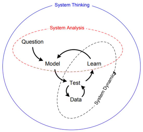 ST has evolved over the last 60 years and has increasingly impacted research. In a nutshell, ST is a science that works by organizing logic and the integration of disciplines to comprehend patterns and relationships in complicated issues. Science discovers links and relationships between seemingly disparate elements. ST incorporates two other concepts: systems analysis (SA) and system dynamics (SD). In general, ST is the mental modeling and science of structuring logic and asking pertinent questions, but this also has practical applications [11] as shown in Figure 1. SA is “the art and science of making reliable inferences about behavior by developing an increasingly deep understanding of the underlying structure [12]”.