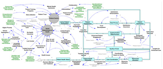 In the current model, we employed a subset of the interventions listed in Table 4, focusing on those most directly relevant to the primary objectives and scope of this study. Interventions such as Access to Healthcare Improvements, Community Health Education, and Patient-Centric Culture Interventions were prioritized for integration due to their immediate and measurable impact on patient engagement, satisfaction, and health outcomes. These interventions allowed us to validate the model’s structure and assess its capability to simulate real-world dynamics effectively. The choice of this subset reflects the study’s goal to create a foundational understanding of system dynamics in healthcare, with a focus on improving care delivery and patient experiences.