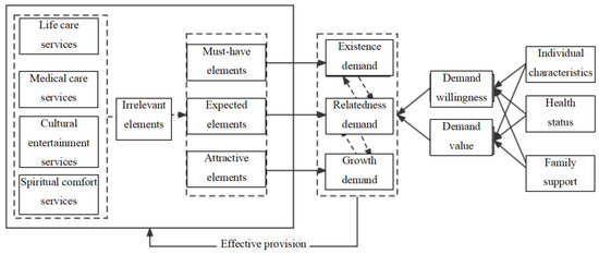 Theoretical model for elderly care service demand analysis of elderly living alone.