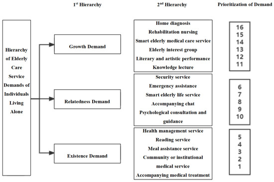 3.1.3. The Hierarchy Model of Elderly Care Service Needs of Individuals Living Alone