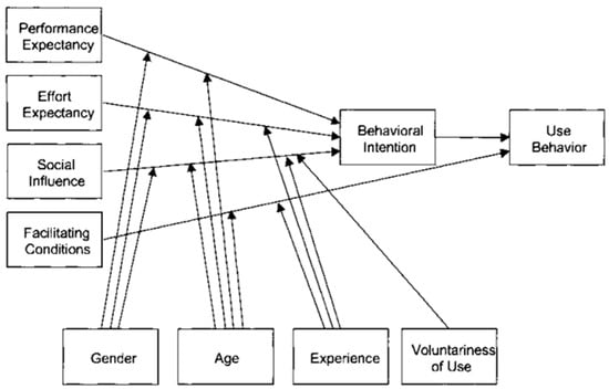 Unified Theory of Acceptance and Use of Technology (UTAUT) adapted from Venkatesh et al. (2003) [].