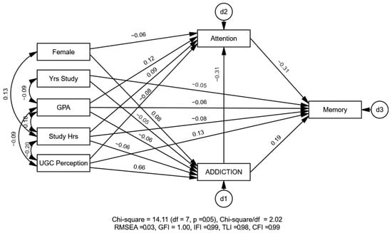 Theoretically speaking, attention and memory are closely interlinked within human cognition. Attention acts as a selective filter, prioritizing sensory information for short-term storage and subsequent processing. This limited-capacity gateway determines what enters memory and potentially becomes a lasting recollection. Encoding, the process of consolidating information into memory, heavily relies on focused attention [,]. Based on this theoretical foundation, we propose that addiction to short-form videos may impair attention, thereby compromising memory function.