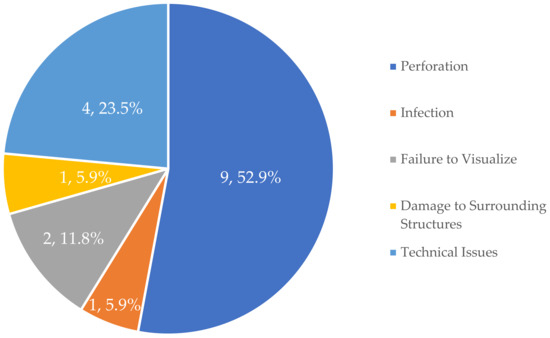 The database was searched for cases published since the database’s inception in 1975 through 1 January 2024. Exclusion criteria included adverse events that were related, yet not directly occurring as a result of the hysteroscopic procedure. Lawsuits against defendants for failure to pursue hysteroscopy as a means of diagnostic or therapeutic procedure, according to the standard of care, were also excluded, as these cases were not directly related to the hysteroscopic procedure. The authors reviewed the full opinion in each case for relevancy and excluded all cases unrelated to hysteroscopy (228 cases, 88.4%). Thirteen of the remaining 30 cases were removed due to harm not directly related to the hysteroscopic procedure. A total of 17 cases in which the adverse event was directly related to a hysteroscopic procedure were included in the final analysis. (See Table 1). The remaining 13 cases not used in the analysis can be found in Appendix A, Table A1.
