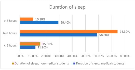 Duration of sleep. Data analyzed by Chi-square; p = 0.001 *.