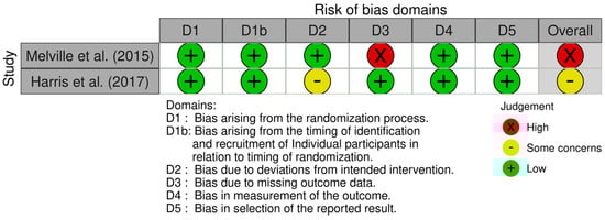 ROB2 risk of bias assessment [,,].
