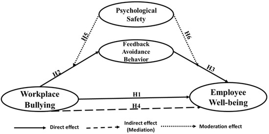 Meanwhile, scholars have recently begun analyzing employees’ passive coping techniques (feedback avoidance) in reaction to workplace mistreatment (workplace bullying) [23,24]. According to Qian et al. (2017), avoidance behavior is a coping mechanism used to lessen the discomfort a potentially threatening person or circumstance brings [25]. Moreover, the negative feelings resulting from workplace bullying may impel targets to participate in behaviors planned to avoid further bullying encounters. Consequently, feedback avoidance can act as a means for bullied employees to cope with these conditions to defend their limited resources by escaping further bullying situations, which, in turn, decreases employee well-being. Accordingly, the study strived to explore the mediating role of employee feedback avoidance in the relationship between bullying in the workplace and employee well-being. Although investigators and practitioners are constantly interested in avoiding feedback behavior [26], to the authors’ knowledge, studies have largely neglected to investigate this relationship which contributes to this study.