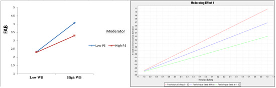 Finally, our PLS-SEM results confirmed the moderation impact of PS on the links between WB and FAB (H5) and also on the links between FAB and EWB (H6). In the health promotion literature, scholars generally endorse psychological safety (PS) as an approach to support EWB [56,57]. Employees who perceive heightened levels of PS can better determine the most suitable available coping strategy to reach a high level of EWB [55,91]. Therefore, a PS climate is predicted to promote increased levels of EWB compared to an unsafe work environment since PS makes employees feel comfortable and unrestricted from external controls or restrictions and engages them in more positive behavior [92,93]. Accordingly, the PS variable succeeded in alleviating (moderating) the positive relationship of the WB toward FAB and the negative linkage of the FAB toward EWB. Managers must confront WB behaviors to reduce FABs to improve EWB. Improving the PS climate can be used in this task to alleviate the negative consequences.