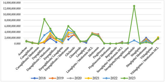 | Metformin | 3,243,165 | 3,155,736 | 2,935,885 | 2,902,115 | −0.02 | 2,781,089.29 | 2,639,609.4 | −0.02 |