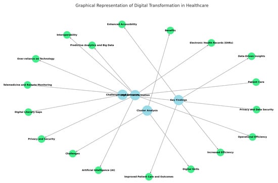 The results of this study highlighted several key areas of focus in digital transformation within healthcare. These topics encompass both the opportunities and challenges associated with integrating digital technologies into healthcare workflows. A summary of the major topics identified is as follows: