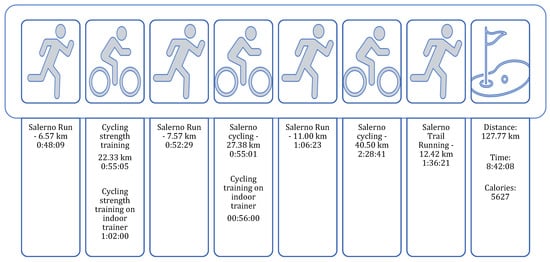 The integration of wearable devices provided valuable real-time data that were instrumental in monitoring and assessing the patient’s recovery progress. These devices [30] are widely accessible and known for their reliability in tracking physical activity [31], captured key metrics such as heart rate [32,33], swimming stroke efficiency [34], cycling cadence [35], training duration, and running biomechanics. This data enabled a detailed analysis of the patient’s physiological responses to rehabilitation exercises and sports-specific activities.