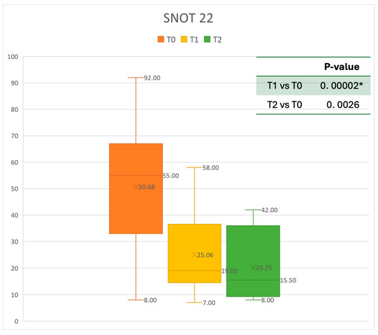 - Gallo, S.; Russo, F.; Mozzanica, F.; Preti, A.; Bandi, F.; Costantino, C.; Gera, R.; Ottaviani, F.; Castelnuovo, P. Prognostic value of the Sinonasal Outcome Test 22 (SNOT-22) in chronic rhinosinusitis. Acta Otorhinolaryngol. Ital. 2020, 40, 113–121. [Google Scholar] [CrossRef]