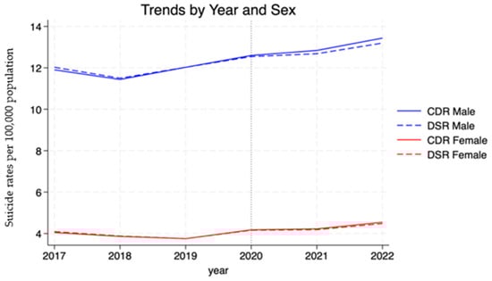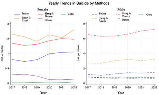 3.2. General Suicide Rates by Sex, Methods, and Monthly Trends