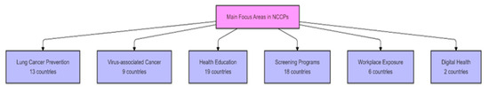 Moreover, health education, including health literacy, continuous professional development for health workers, and cancer associated with viruses, along with better screening programs, is one of the focuses of most European countries (Austria, Croatia, Cyprus, Czech Republic, Greece, Hungary, Ireland, Italy, Lithuania, Malta, Poland, Portugal, the Slovak Republic, Spain, Sweden, UK England, UK Wales, UK Northern Ireland, and UK Scotland). Concurrently, 18 of the European countries reported through their NCCPs that better screening programs would be enacted along with population-based screening focusing on availability and efficiency [24].