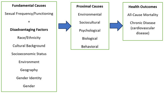 The first concept involves contextualizing fundamental individual-based factors to predict variations in disease characteristics among individuals. In this study, we apply this concept to cardiovascular disease (CVD). The second concept focuses on fundamental causes, specifically the social determinants of health, such as socioeconomic status, which influence disease-related risk factors [2022]. In our model, potential moderating variables are categorized as proximal determinants, with health conditions serving as the final outcomes. Additionally, sexual frequency has been incorporated as a moderating variable.