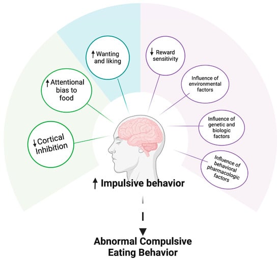 The etiology of BED is complex and multifactorial, similar to other psychiatric disorders, with biological, individual, and societal factors all influencing dysregulated eating and related behaviors. BED may be characterized by abnormalities in reward processing, inhibitory control, and emotion regulation that fall along the spectrum of impulsivity [9]. The aim of this narrative review is to examine various factors contributing to the development of BED, and to provide a comprehensive overview of the current understanding of its complexity.