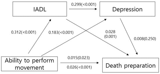 APA StyleKwon, M., Kim, S. A., & Kim, J. (2025). Mediating Effect of IADL and Depression in the Relationship Between Ability to Perform Movements and Death Preparation in Elderly with Osteoarthritis or Rheumatoid Arthritis. Healthcare, 13(5), 513. https://doi.org/10.3390/healthcare13050513