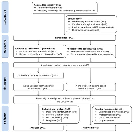 APA StyleWu, M.-H., Chen, C.-J., & Lee, H.-F. (2025). Effectiveness of Mobile-Based Learning for Nasogastric Tube Intubation Among Medical Students: A Randomized Controlled Trial. Healthcare, 13(5), 546. https://doi.org/10.3390/healthcare13050546