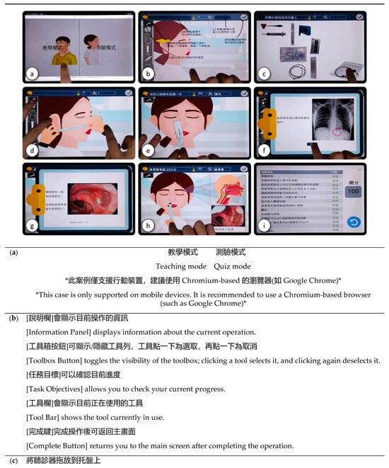 - Su, J.M.; Huang, W.L.; Huang, H.C.; Tseng, Y.L.; Li, M.J. A Scenario-Based Web App to Facilitate Patient Education in Lung Tumor Patients Undergoing Video-Assisted Thoracoscopic Surgery: Development and Usability Testing. Digit. Health 2024, 10, 20552076241239244. [Google Scholar] [CrossRef]