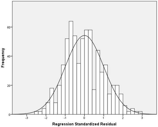 Histogram of the residuals with depressive symptoms as the dependent variable.