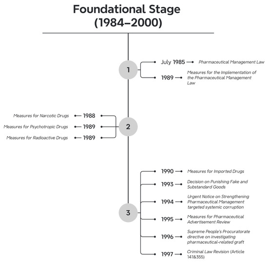 The rapid expansion of China’s pharmaceutical market during the 1980s, driven by socio-economic liberalization, exposed critical vulnerabilities in drug quality and regulatory oversight [49]. The proliferation of substandard and counterfeit medicines, coupled with regulatory blind spots in distribution channels, posed significant threats to public health, requiring urgent legislative intervention to safeguard public health. This period witnessed the establishment of China’s first comprehensive pharmaceutical legal framework, transitioning from fragmented administrative decrees to codified governance.