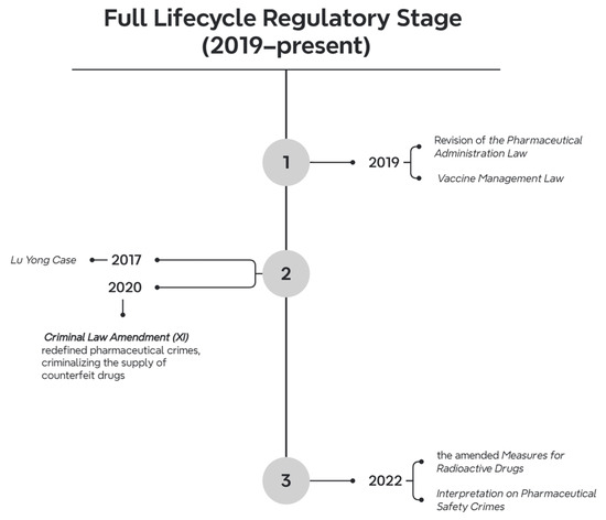 The early 21st century witnessed a paradoxical dynamic in China’s pharmaceutical landscape: while market liberalization catalyzed industrial growth, it simultaneously amplified systemic risks, culminating in a series of catastrophic drug safety crises. High-profile incidents—including the Xinfu case (2006) involving adulterated antibiotics [50]; the Shanxi vaccine scandal (2010), exposing falsified storage records [51]; and the Changsheng vaccine crisis (2018), revealing substandard pediatric vaccines—severely eroded public trust, exposing structural flaws in the regulatory system, and the reputation of the drug regulatory authorities faced a significant public crisis [52]. These crises precipitated a transformative legislative response, characterized by three comprehensive revisions of the Pharmaceutical Administration Law (2001, 2013, 2015) and parallel judicial reforms to address evolving criminal complexities.
