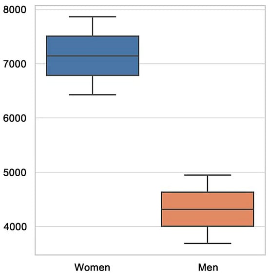 The financial impact of TWTD cases in 2020 varied significantly across Autonomous Communities (CCAA). Cantabria recorded the highest average economic cost per TWTD case (EUR 3390.50), followed by Madrid (EUR 2986.75). Conversely, the lowest economic burdens were observed in Extremadura (EUR 1538.43) and La Rioja (EUR 1751.67). When analyzing gender differences, men generally incurred higher financial costs per TWTD case compared to women in most regions. However, exceptions were noted in the Valencian Community and Galicia, where women had slightly higher average TWTD-related costs than men. Significant gender differences in TWTD-related costs were found in Catalonia and the Basque Country (Table 2).