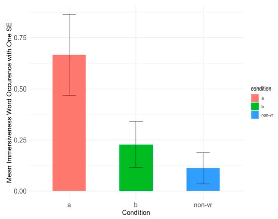 “Immersiveness”, “immersed”, “immersive”, “immersing”, “immerse”, “immersion”, “realistic”, “being in nature”, “helped me visualize”, “took me out of the real world”, “made me feel like I am actually in the forest”, “being in the virtual environment”, “similar to a real-life experience”.