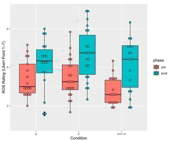 - Kourtesis, P.; Collina, S.; Doumas, L.A.A.; MacPherson, S.E. Validation of the Virtual Reality Neuroscience Questionnaire: Maximum Duration of Immersive Virtual Reality Sessions Without the Presence of Pertinent Adverse Symptomatology. Front. Hum. Neurosci. 2019, 13, 417. [Google Scholar] [CrossRef]
