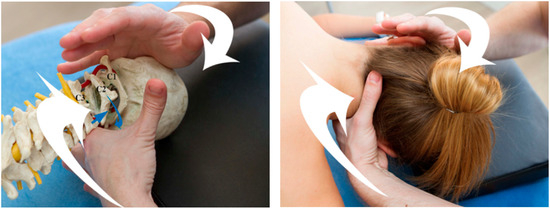 Moreover, high-velocity, low-amplitude manipulative techniques of the cervical spine seem to offer results in recent and persistent nonspecific neck pain without additional cost [17,18]. In fact, together with multimodal care, mobilization/manipulation has been recommended in clinical practice guidelines on the treatment of whiplash-associated disorders [19,20], combined with other treatments, such as educational videos and pain neuroscience education, exercises, or conventional physical rehabilitation [14,21]. All these treatments are also frequently used to treat neck problems, and they can produce similar changes in the short term, although with different healthcare costs. However, the optimum treatment and adequate dosage have not been determined, and there are insufficient data to assess long-term outcomes. Furthermore, although manipulative techniques seem to be effective in combination, there is insufficient evidence to confirm their benefit over more traditional techniques, as the available evidence on their effectiveness is limited, and the studies are of low quality [22]. Therefore, the main aim of the study was to determine the mid- and long-term efficiency (15, 30, and 120 days after starting sessions) of the cervical Specific Adjustment Technique (SAT) in patients with grade II acute WL, comparing it with a conventional rehabilitation program.
