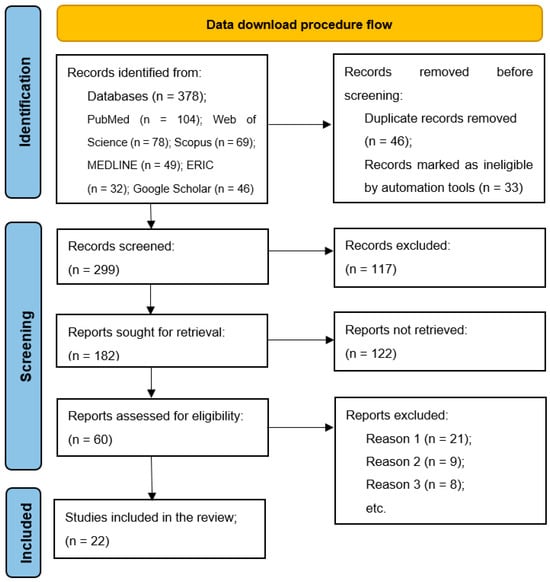 A systematic and transparent approach to data collection, analysis, and selection is essential for ensuring validity, minimizing bias, and maintaining the reliability of findings. For this reason, the PRISMA guidelines (Preferred Reporting Items for Systematic Reviews and Meta-Analyses) were applied in this study [32]. The study protocol for this systematic review was registered with the International Platform of Registered Systematic Review and Meta-analysis Protocols (INPLASY202530015).