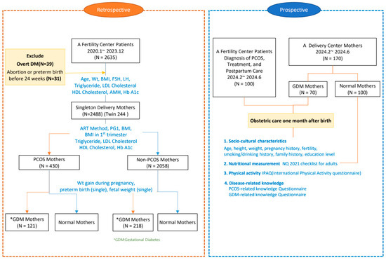 The inclusion criteria of the study were Korean pregnant women aged 19–45 years who had delivered following infertility treatment. Participants were categorized into three groups: those diagnosed with PCOS, those with GDM, and a normal maternal group. The exclusion criteria included individuals with pre-existing type 1 or type 2 diabetes prior to pregnancy and those unable to independently read or complete the questionnaire (Figure 1).