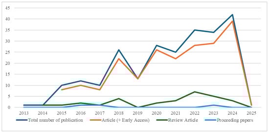 Based on the identification and extraction of relevant scientific publications that met the criteria outlined in the methodology section, a total of 238 scientific publications were retrieved. These publications contained the specified search terms in their titles, abstracts, or author keywords (as of 10 January 2025).