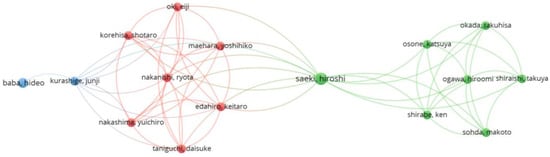 The size of the nodes on the map corresponds to the number of publications by each author, while the thickness of the links between them indicates the intensity of their collaboration. Among the most prominent authors in the analyzed field are predominantly Chinese and Japanese researchers, who lead scientific production in this domain.