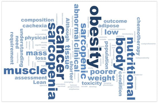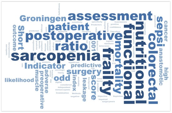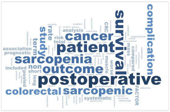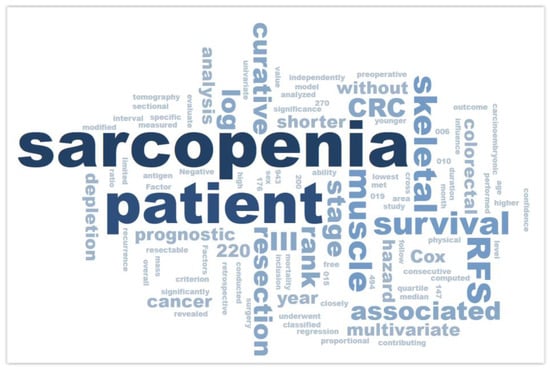 As part of the direct review of the most frequently cited articles, the WordSift platform was also utilized. This tool was used for analyzing and visualizing key terms and topics appearing in the texts of the most cited publications in the field of sarcopenia as a prognostic factor in CRC surgical treatment outcomes.