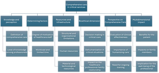 Background/Objectives: Comprehensive care is crucial in emergency healthcare. In intensive care units, a holistic approach may be difficult to implement due to the conditions of the patients and existing work protocols aimed at maintaining vital functions for the survival of patients. The present study aims to explore and describe the knowledge, attitudes, and perceptions of critical care and emergency health professionals regarding the implementation of integrated care practices within intensive care units, with the goal of identifying barriers and facilitators to adopting a holistic approach in emergency healthcare settings. Methods: This study implemented an exploratory and descriptive qualitative design with a phenomenological approach through semi-structured interviews with health professionals who had worked in intensive care units or emergency services for both public and private health institutions in Spain (n = 25). The study was conducted during the years 2023 and 2024, using a convenience sampling method along with snowball sampling, and a narrative discourse analysis was performed. The MAXQDA 2022 software program was used. This study was granted due permission by the Research Ethics Committee belonging to the Junta de Andalucía, under protocol code 0768-N-20. Results: The total sample consisted of 25 healthcare professionals from critical care and emergency services in Spain. The main themes, as key findings, were knowledge and perception, determining factors, resources and infrastructure, the bioethical dimension, perspectives on comprehensive care, and multidimensional impact. Most of the professionals were familiar with comprehensive care, but lack of resources and time prevented them from carrying it out in their units. Conclusions: For critical care and emergency professionals, comprehensive care is important to their clinical practice, but barriers to its realization still exist. Understanding the importance to these professionals of the application of comprehensive care is fundamental to establishing measures for its implementation in these services. It is also a motivation to continue providing humanized and compassionate care that respects the patient’s dignity. It is a priority to provide the necessary infrastructure and human resources so that patients admitted to these units can be cared for with this tool.