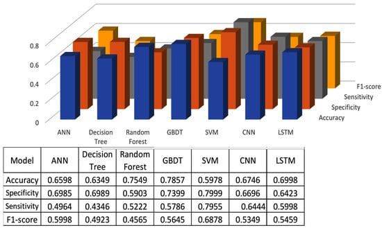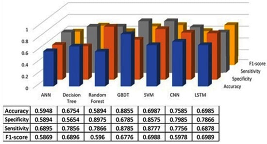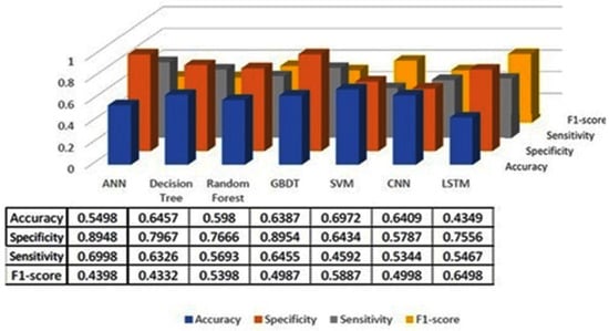 The classification results using seven machine learning models are summarized in Figure 5, Figure 6 and Figure 7. The highest accuracy was achieved in the following cases: high-pitch passages with the Decision Tree model (Accuracy: 98.66%), normal-pitch passages with the LSTM model (Accuracy: 76.94%), and low-pitch passages with the LSTM model (Accuracy: 85.64%).