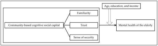 Based on social capital theory, we propose that cognitive social capital in the community among older people comprises three latent mechanisms: the elderly’s familiarity with community members, their trust in community members, and their sense of security in the community where they live. The elderly’s degree of familiarity with community members represents the older people’s perception of reciprocity among community members. Meanwhile, the degree of trust in community members and the feeling of security in the community indicate older people’s perception of trust in the setting of their living community.