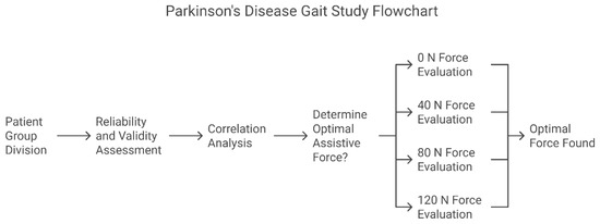 Step 1. Reliability and Validity Assessment: Compare the spatiotemporal gait parameters of the PD experimental group and the healthy control group with an assistive force of 0 N to determine their reliability and validity;