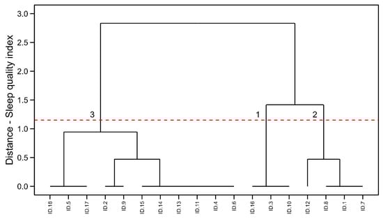HC visualization in female endurance running athletes. Cluster 1: the poorer sleep quality indexes, Cluster 2: the mid-levels of sleep quality and Cluster 3: the best sleep quality indexes.