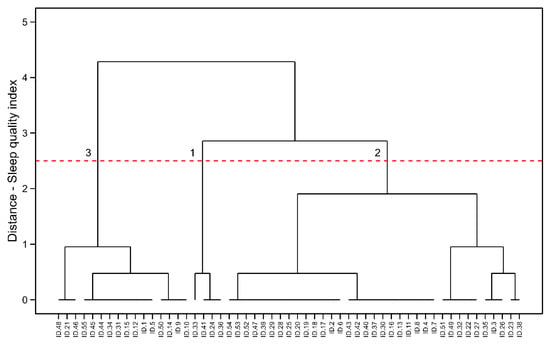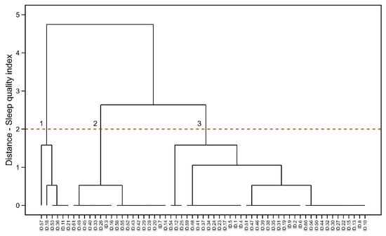 HC visualization in male endurance running athletes. Cluster 1: the poorer sleep quality indexes, Cluster 2: the mid-levels of sleep quality and Cluster 3: the best sleep quality indexes.