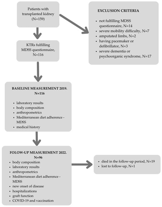 Flow-chart of the study. Abbreviations: N—number, KTR—kidney transplant recipient, MDSS—Mediterranean Diet Serving Score.