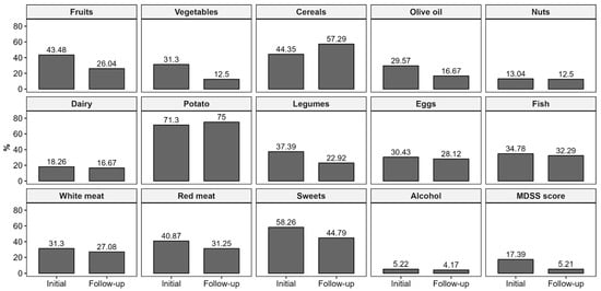 Changes in adherence to different components of the Mediterranean diet in the follow-up period. Abbreviations: MDSS—Mediterranean Diet Serving Score.