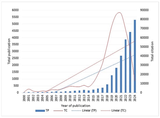 Annual publication and citation trends from 2000 to 2024.
