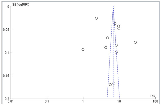Funnel plot of studies assessing the association between dynapenic abdominal obesity and adverse outcomes (falls, disability, and mortality).