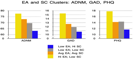 Mean values of PHQ, GAD, and ADNM intensity in the extracted clusters.