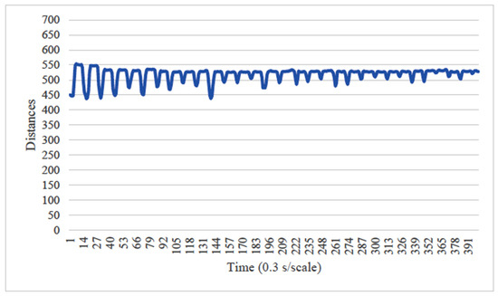 Before the image analysis, the optimal image processing conditions were determined by comparing two conditions for the vertical axis of the chewing data: (1) the minimum and maximum values during the 20 s chewing period were fixed to the range of 0 to 700, which included the minimum and maximum values of all sampled images (Figure 5), and (2) the axis range was set to the minimum and maximum values during the 20 s chewing period for each image (Figure 6). The learning curves obtained from both conditions were compared, and the optimal image processing parameters for analysis were selected. Analyst: Prof. Naoto Takahashi, Director of the Advanced Intelligence Technology Center, Sapporo City University, Japan.